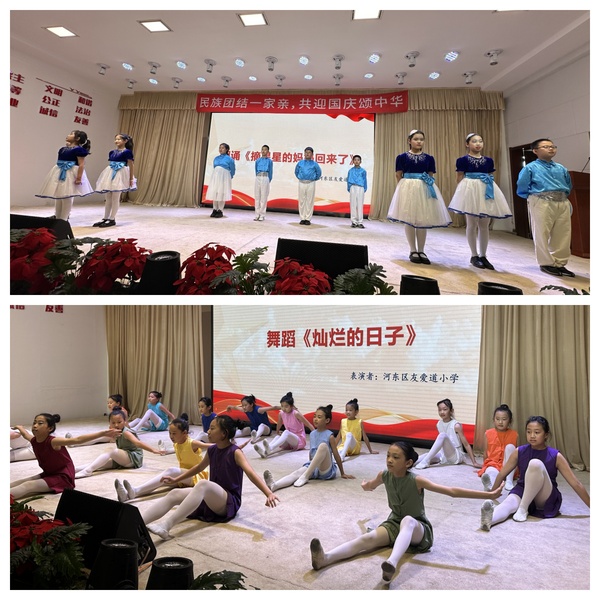 活动中,河东区友爱道小学的同学们用童声朗诵《摘星星的妈妈回来了》,抒发了对远在太空遨游妈妈的思念与崇敬,表达了企盼妈妈摘星星回家的天真与美好;用集体舞《灿烂的日子》,充分展现了少年儿童健康快乐成长、充满生机活力的精神风貌和对美好未来的追求与向往。