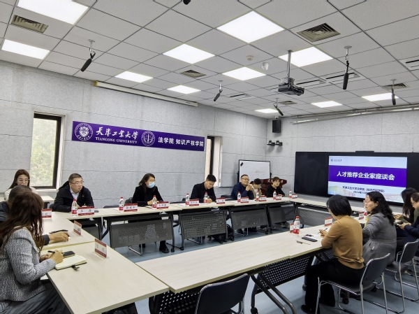为了进一步加强校企合作,深化人才供需对接,助力毕业生高质量就业,在天津工业大学国家知识产权信息服务中心的支持下,近日,法学院在学院309会议室召开学生就业实习校企对接座谈会。天津硕众律师事务所,天津东方律师事务所、允衡商事调解中心、天津市西青区知识产权运营中心等11家企业负责人和法学院师生代表参加座谈。
